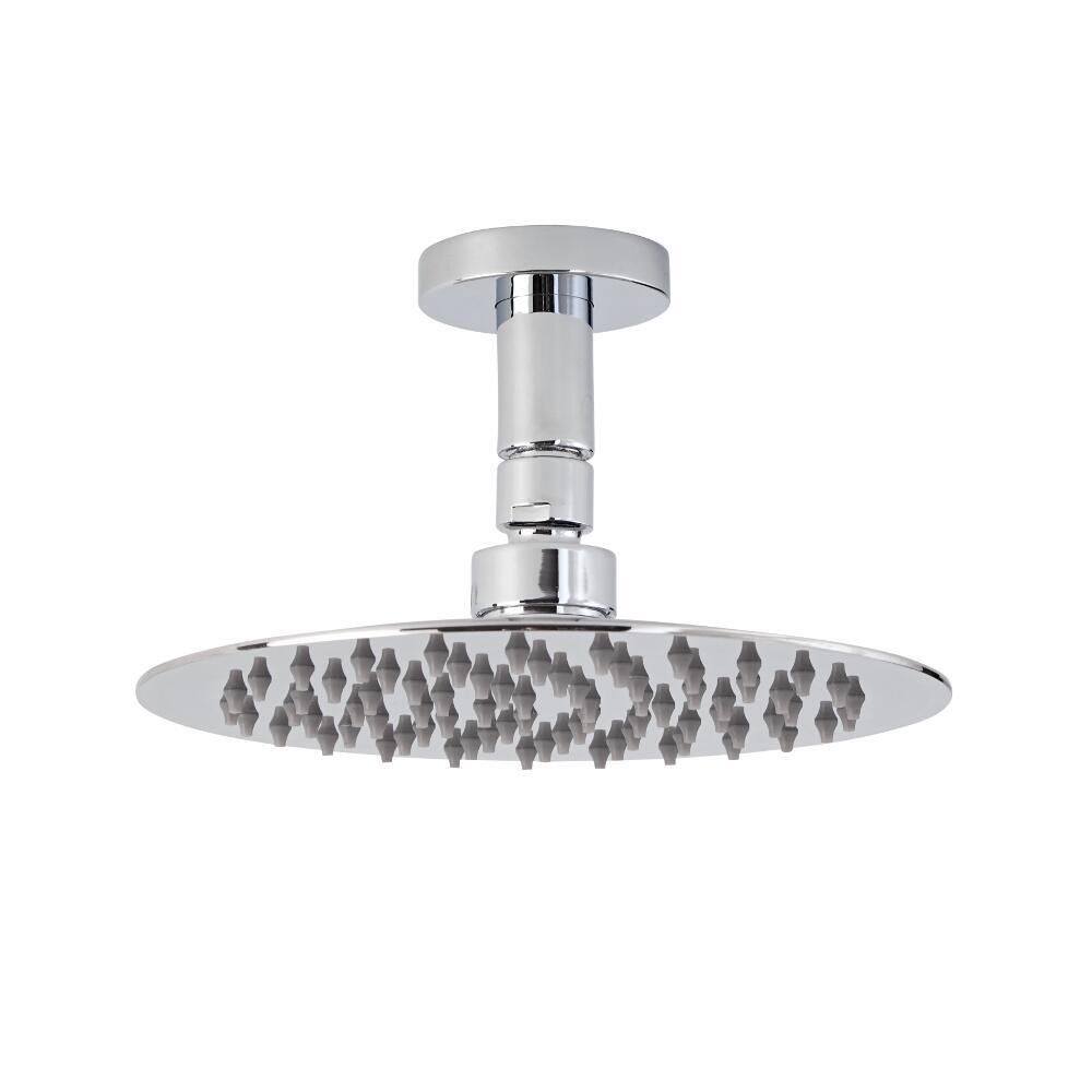 Fabriqué en laiton, ce bras court à installer au plafond dispose d'une finition chromée brillante, en harmonie avec de nombreux décors de salle de bain et crée l'illusion d'une pomme au ras du plafond.