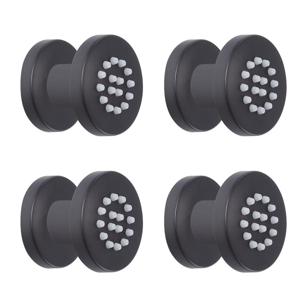 Fabriquées en laiton durable, ces buses disposent d’une finition noir mat résistante pour un look audacieux et moderne. Les 4 buses hydromassantes offrent un jet puissant qui vous laissera vivifié. Chaque jet est doté d’un joint pivotant vous permettant d’ajuster l’angle, tandis que les picots en silicone permettent de nettoyer les dépôts de calcaire facilement.