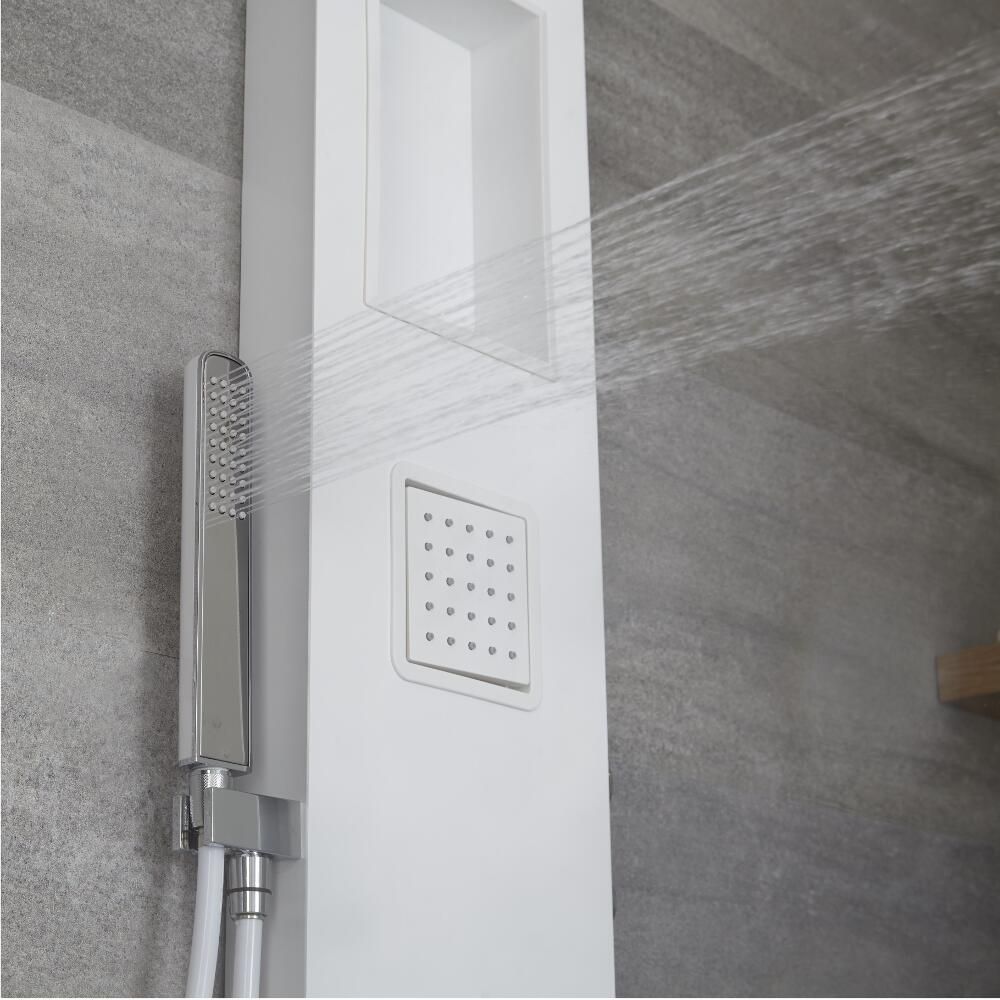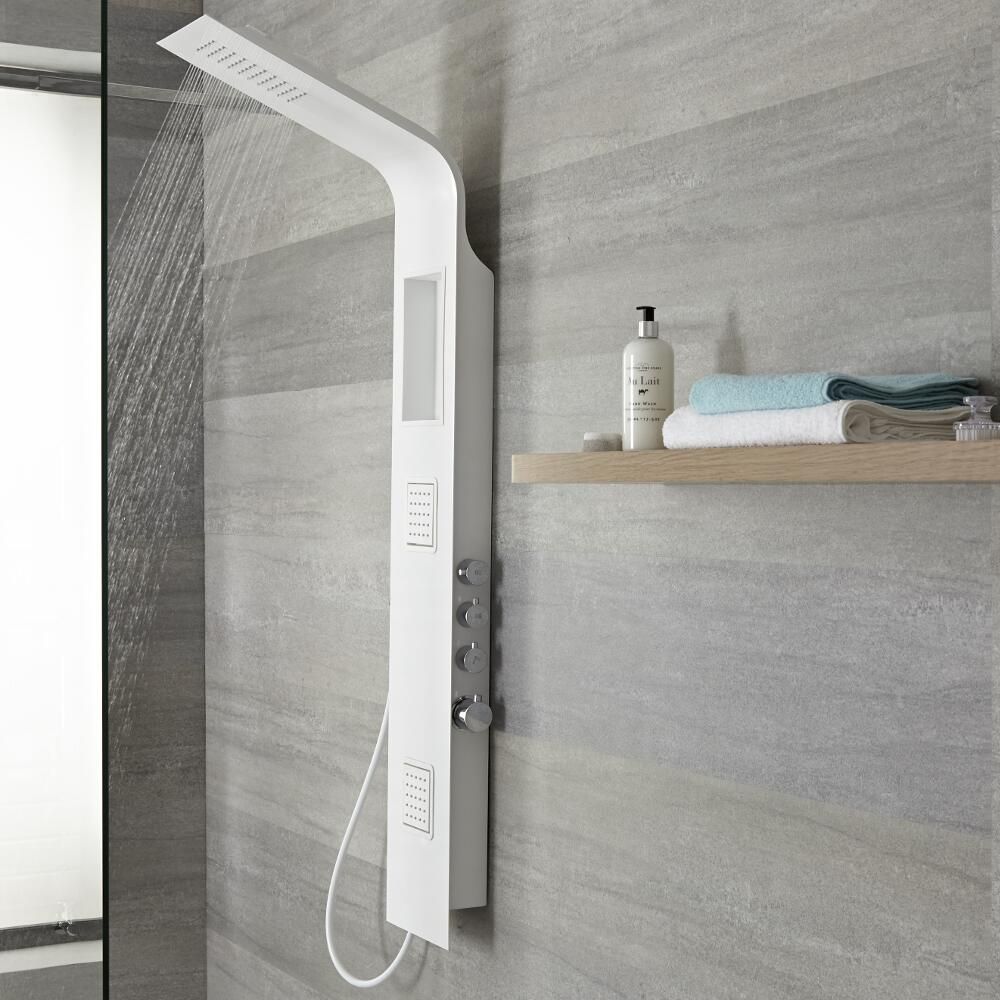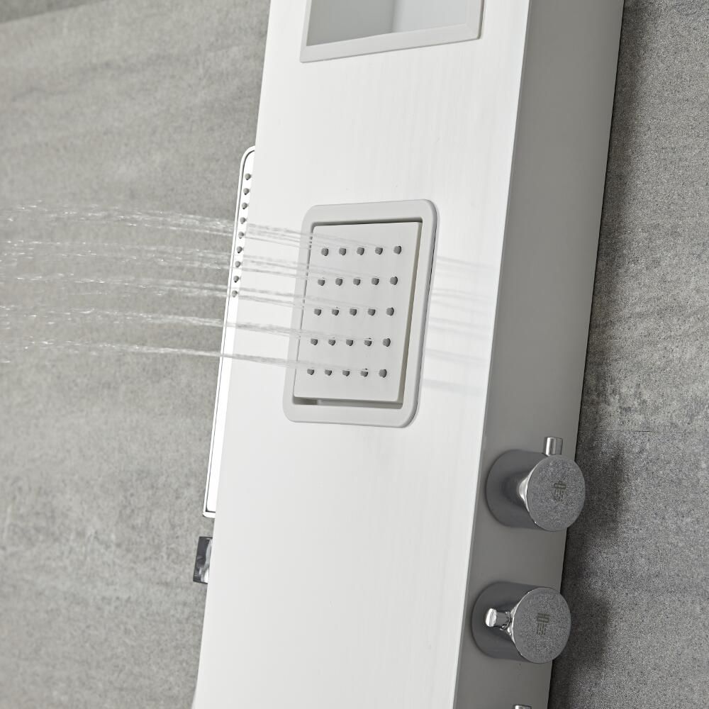 Colonne de douche exposée moderne avec étagère, pommeau, douchette et buses hydromassantes – Blanc - Stamford