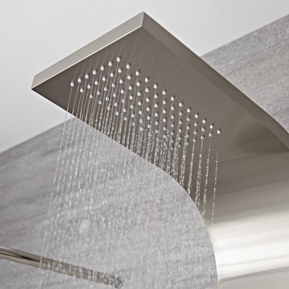 Cette colonne élégante intègre un pommeau de douche qui diffuse un tomber d’eau en pluie ou en cascade, une douchette et une buse hydromassante pour vous rafraîchir et vous revigorer. De plus, cette colonne dispose d’une étagère intégrée pour ranger vos articles de toilette à portée de main et conserver un aspect soigné.