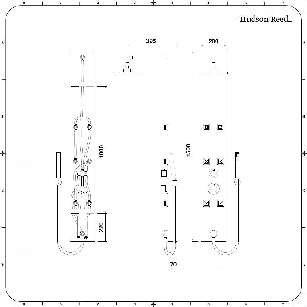 Colonne de douche thermostatique exposée avec pommeau, 6 buses hydromassantes et douchette – Easton