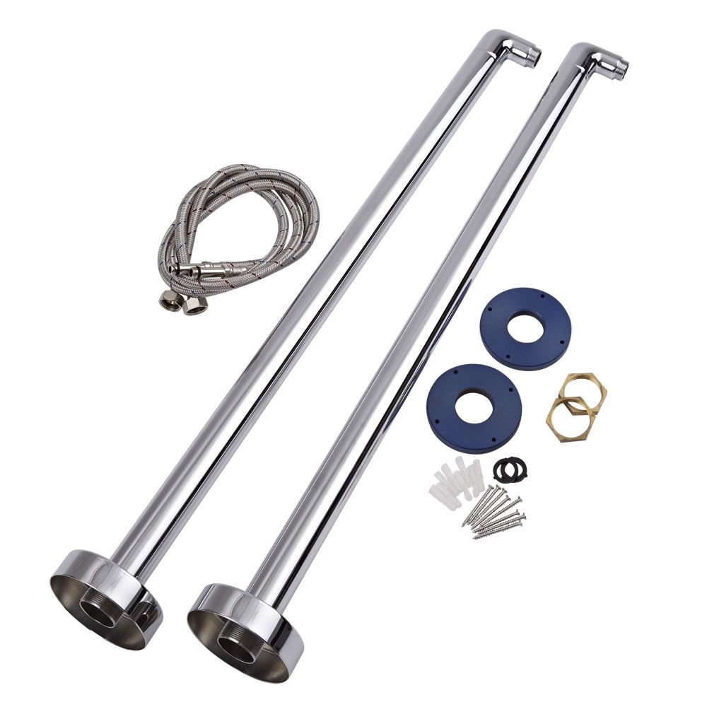 Conservez le style élégant de votre baignoire îlot lors de l’installation de vos robinets grâce à ses colonnes pour baignoire Elizabeth. Elles vous permettent d’installer un mitigeur bain douche ou des robinets par-dessus le bord d’une baignoire îlot, sans trous pré-percés pour la robinetterie. Fabriquées en laiton massif à la finition chromée, ces colonnes dissimulent parfaitement la tuyauterie d’alimentation d’eau entre le sol et les robinets pour s’harmoniser avec le décor de votre salle de bain. Les raccords flexibles, qui servent à alimenter la robinetterie baignoire îlot, mesurent ½”, et les raccords du mitigeur bain douche, qui se fixent sur les colonnes, sont de ¾".