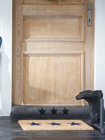 Pour une solution compensatoire économique, pensez aux bas de portes en brosse ou, ne nécessitant aucune installation, aux boudins de portes (ou bas de porte) en tissu. Leur nom n’est pas très engageant, je vous le concède, mais ils sont néanmoins de réels accessoires de décorations, et permettent une bien meilleure isolation thermique et phonique, de façon très simple. Associé à un rideau assez épais sur toute la longueur de la porte, ils feront des miracles.