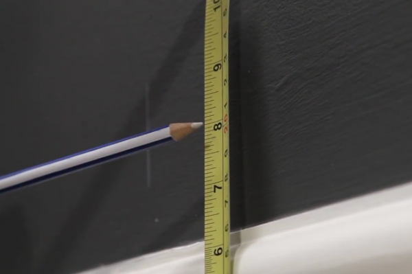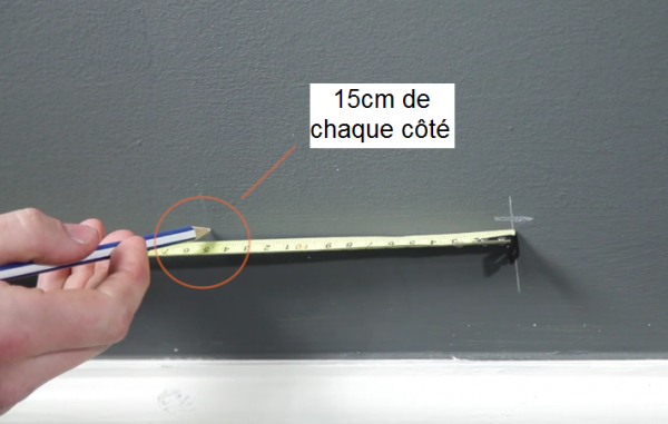 Divisez cette mesure par deux et marquez-la sur le mur.