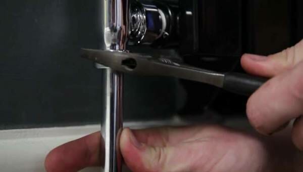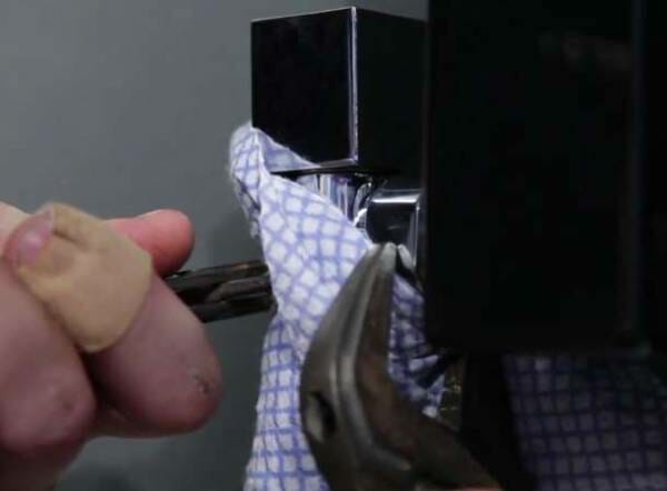 …et puis, à l’aide de votre clé à molette, serrez l’écrou. Placez un chiffon sur le corps du robinet afin de ne pas l’endommager.