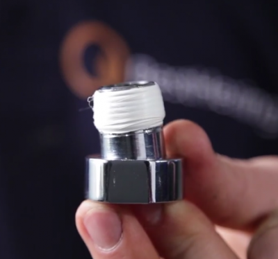 Tout d’abord, enroulez l’extrémité des raccords de robinets avec du ruban PTFE (Ruban adhésif d’étanchéité) environ 17 fois dans le sens des aiguilles d’une montre.