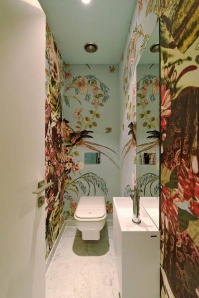 Le papier peint vous permet d’apporter une touche fun et rafraîchissante à une pièce un peu triste ou monotone, alors ne soyez pas timide avec les motifs et les couleurs et n’hésitez pas à utiliser des couleurs vives ou des motifs originaux ! De plus, la surface murale de vos toilettes n’étant pas énorme, peu de rouleaux seront nécessaires à retapisser la pièce entière. C’est l’opportunité de choisir un papier peint peut-être plus luxueux ou opulent que pour d’autres pièces plus grandes. Faites-vous plaisir !
