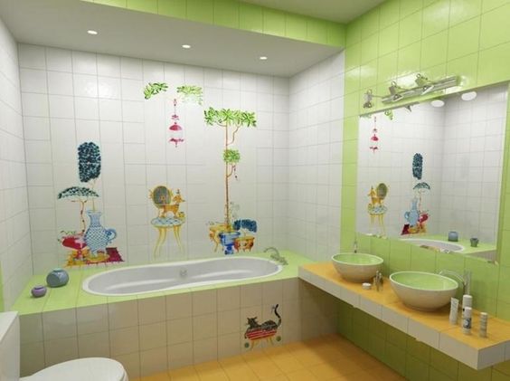 Couleurs acidulées, vous pourrez facilement y retrouver de sublimes salles de bain sur le thème de princesses, de films d’animation ou de super-héros. Nous voulions en revanche vous montrer celles qui ont vraiment tout d’une grande.