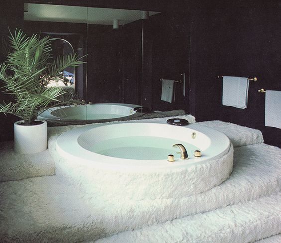 Je ne vous apprends probablement rien en vous disant que les années 80 ont été le théâtre de toutes les excentricités en matière de décoration (et pas uniquement), en particulier si vous avez vu le film Scarface. La baignoire à elle-seule vaut bien le peine de regarder le film entier (et pas uniquement).