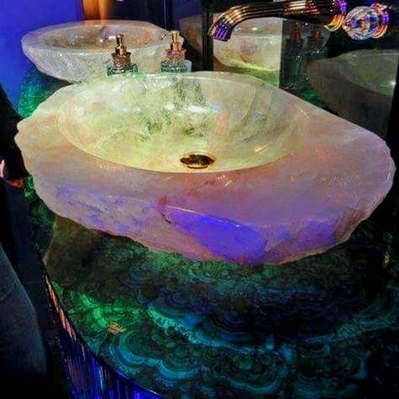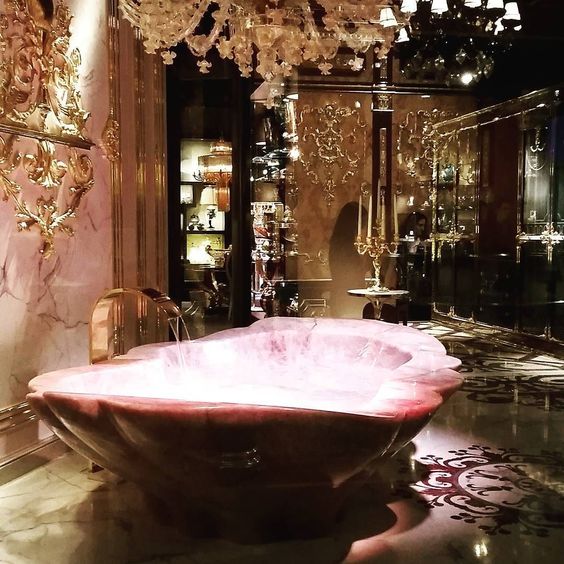 Les effets de lumières y sont impressionnants et instaurent une ambiance féérique, et chaque élément de ces salles de bain est comme un bijou. Un style très atypique et original, aussi intéressant qu’énigmatique.