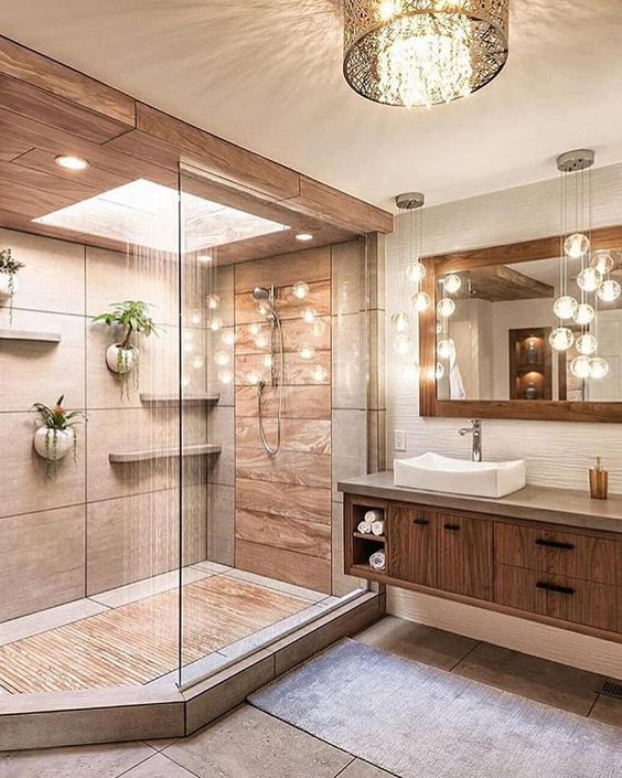 Inspirées des décors sublimes des hammams, ces salles de bains luxueuses nous font voyager rien qu’à les regarder. Atmosphère intime et apaisante, la salle de bain de luxe orientale nous comble de formes exotiques, lustres fascinants et mosaïques hypnotiques.