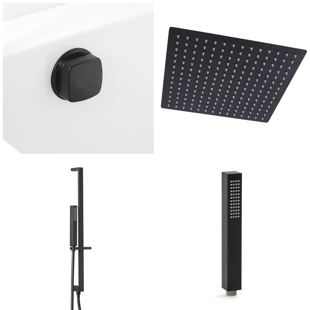 Kit bain douche thermostatique avec inverseur, pommeau encastrable, kit douchette sur rampe et vidage remplissage baignoire – Noir mat – 3 fonctions – Preto