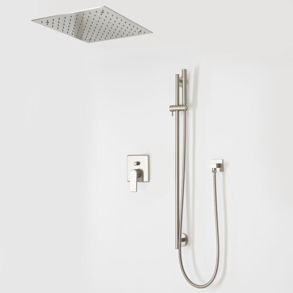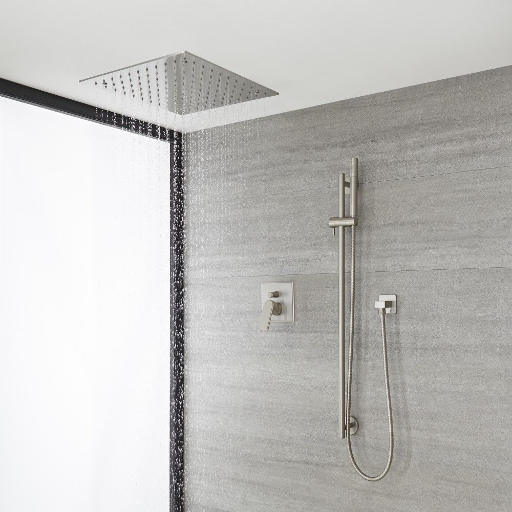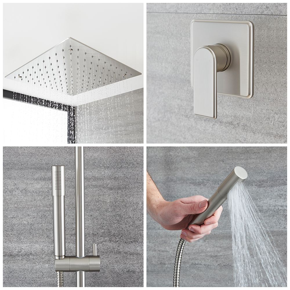 Kit de douche avec pommeau encastré et kit douchette sur rampe – 2 fonctions – Nickel brossé - Aldwick
