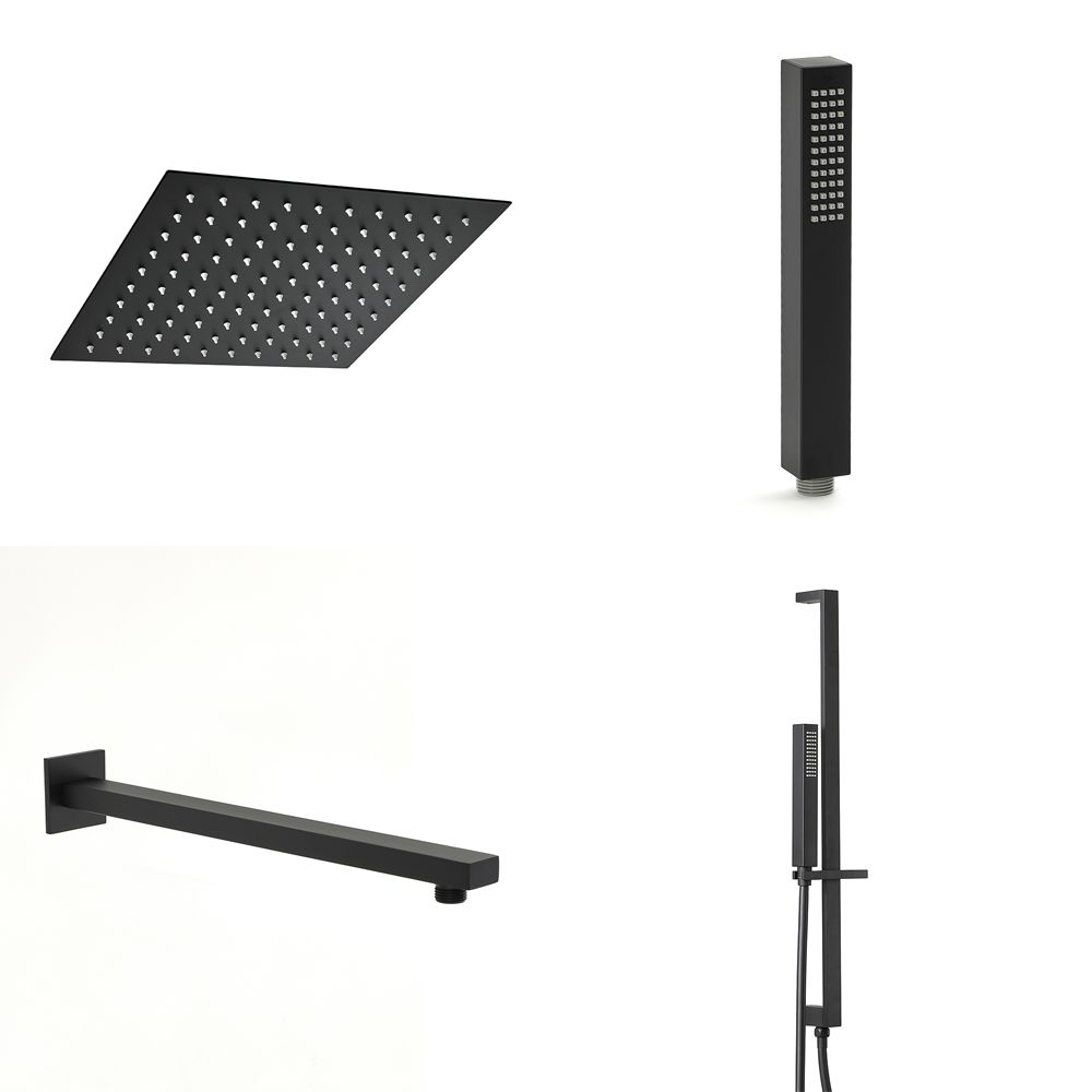 - Pommeau de douche carré 30 cm et bras mural en laiton - Preto