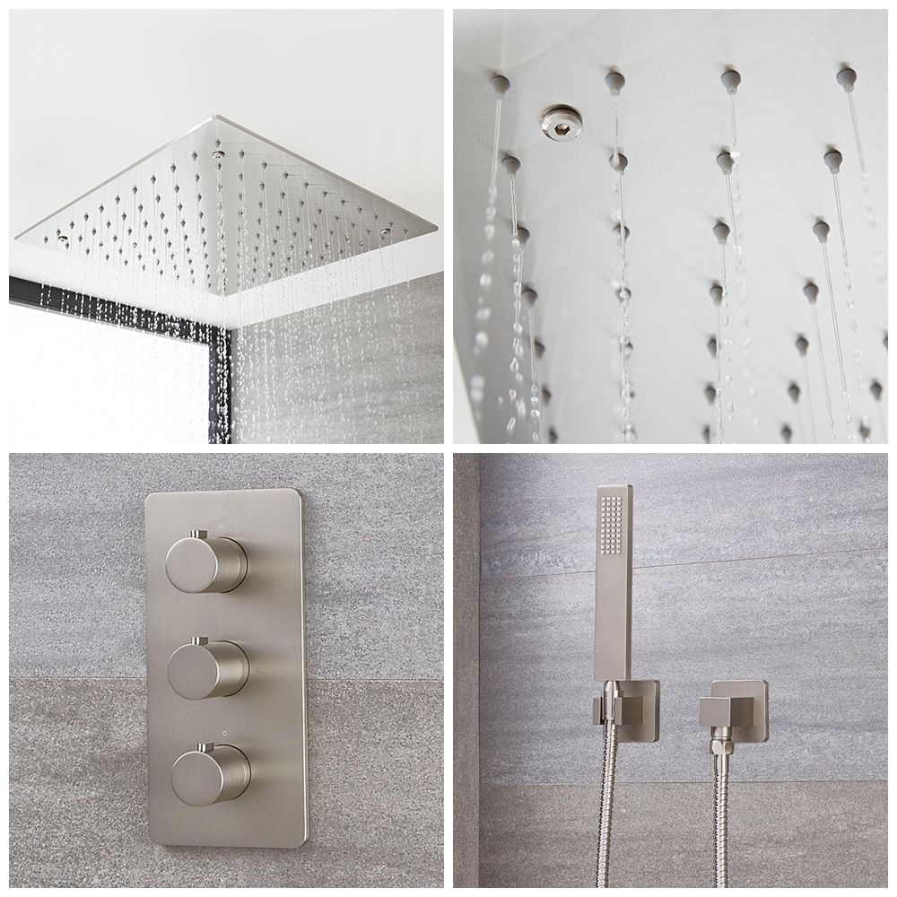 - Pommeau encastré carré 40 cm x 40 cm en acier inoxydable
