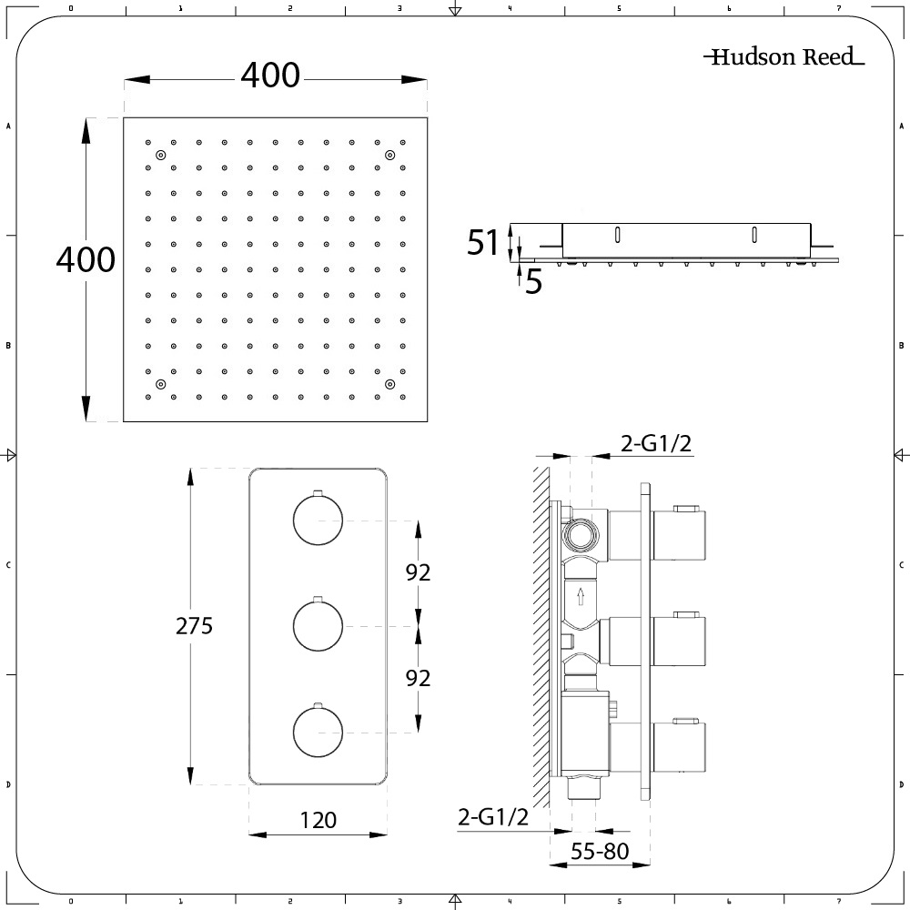 Rénovez votre salle de bain et créez un look moderne avec le kit de douche Harting, composé d’un mitigeur thermostatique, d’un pommeau encastré de 40 cm et d’une douchette.