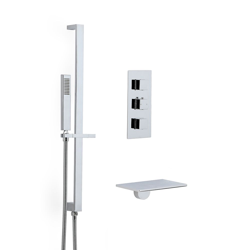 Kit de douche thermostatique - Bec verseur cascade baignoire – Kit douchette sur rampe – Chromé - Kubix