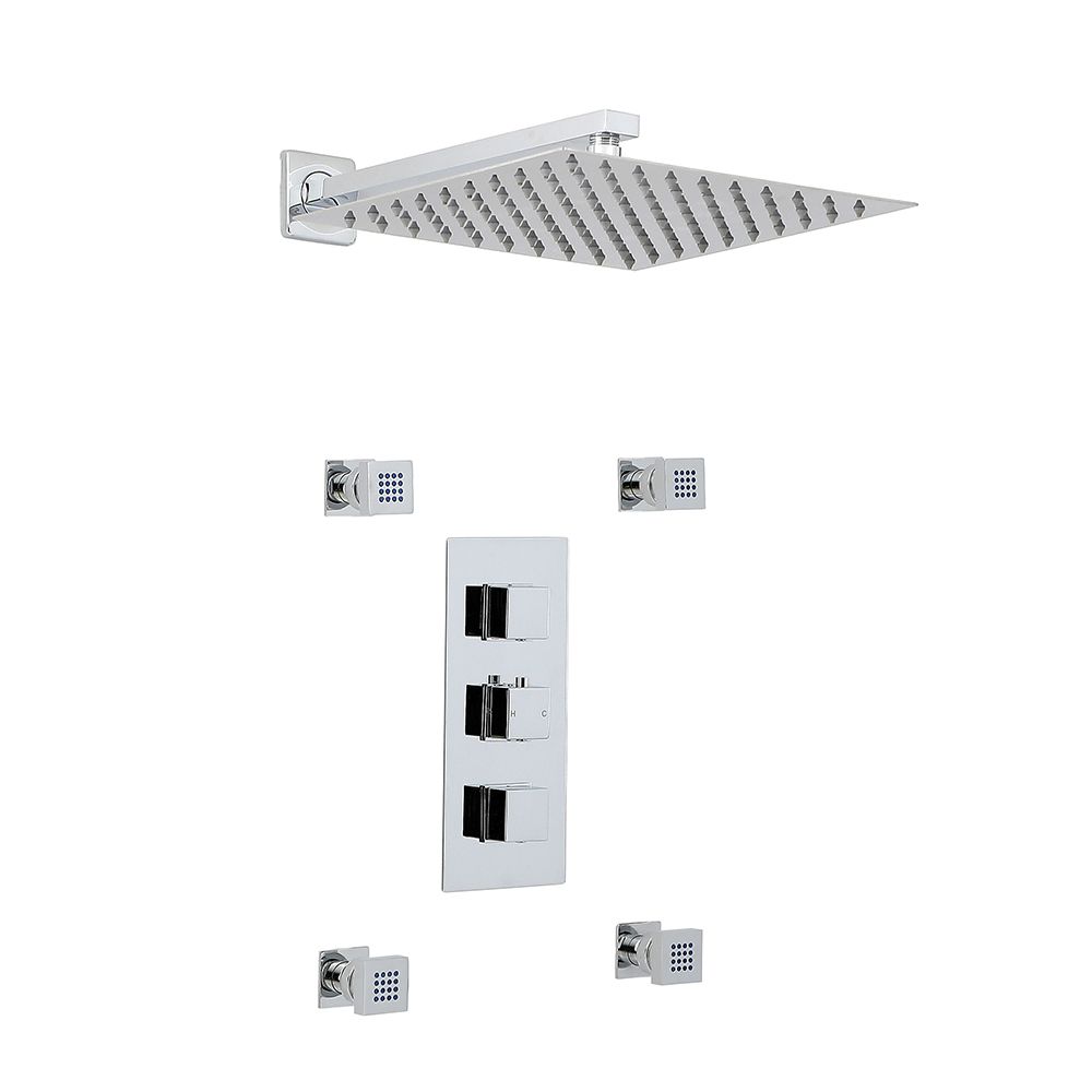 Kit de douche thermostatique – Pommeau carré 30 cm - Buses hydromassantes – Chromé - Kubix