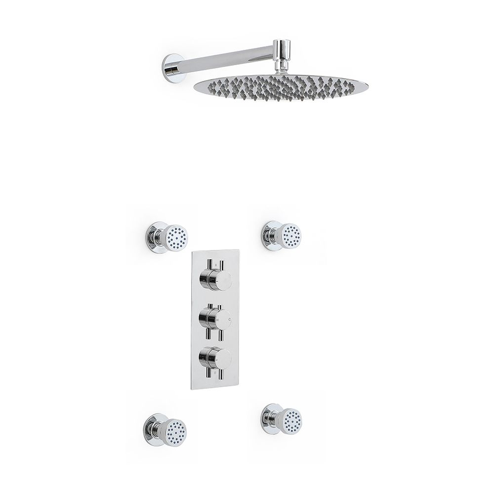 Kit de douche thermostatique – Pommeau rond Ø 30 cm – Buses hydromassantes – Chromé - Como