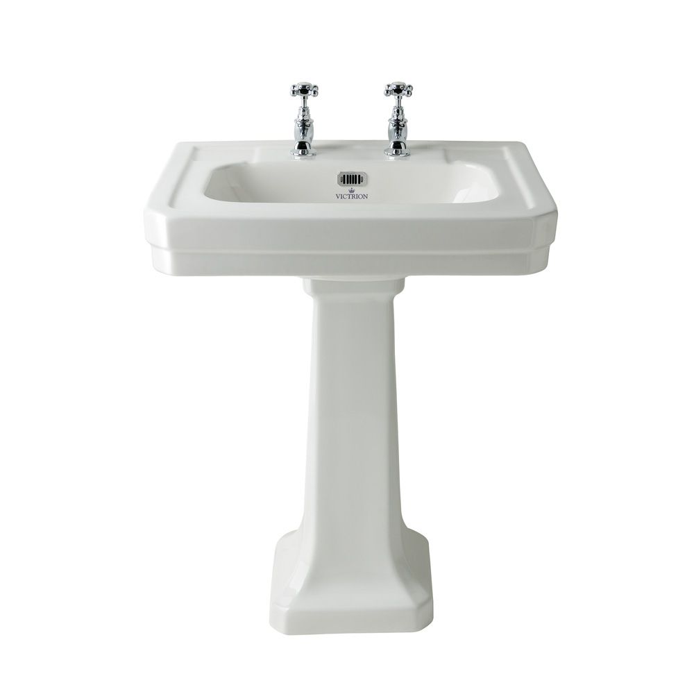 Lavabo sur colonne - 54 cm - 2 trous pour la robinetterie - Victrion