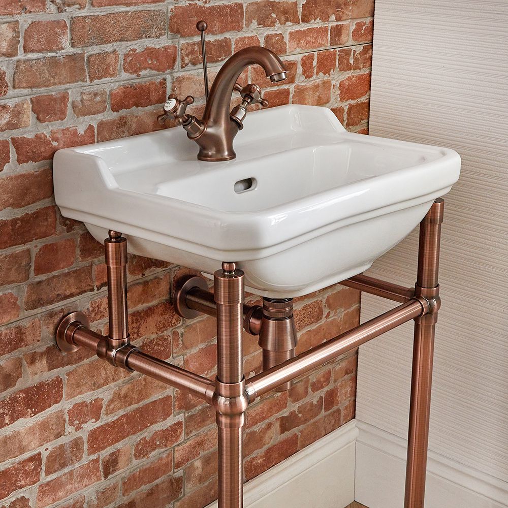 Apportez une touche rétro et élégante à votre salle de bain avec le lavabo sur pieds cuivré de 50 cm Richmond.