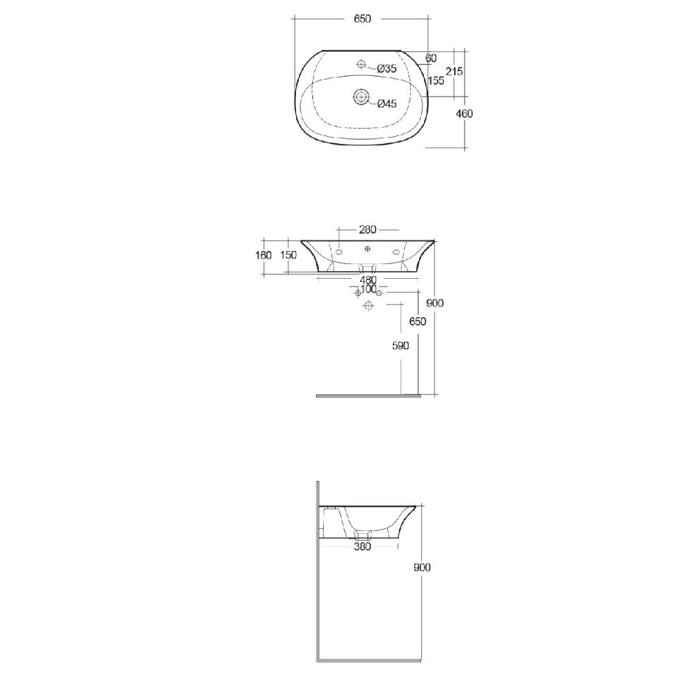 Lavabo suspendu moderne – Blanc brillant – 65 cm x 46 cm – 1 trou – RAK Sensation x Hudson Reed