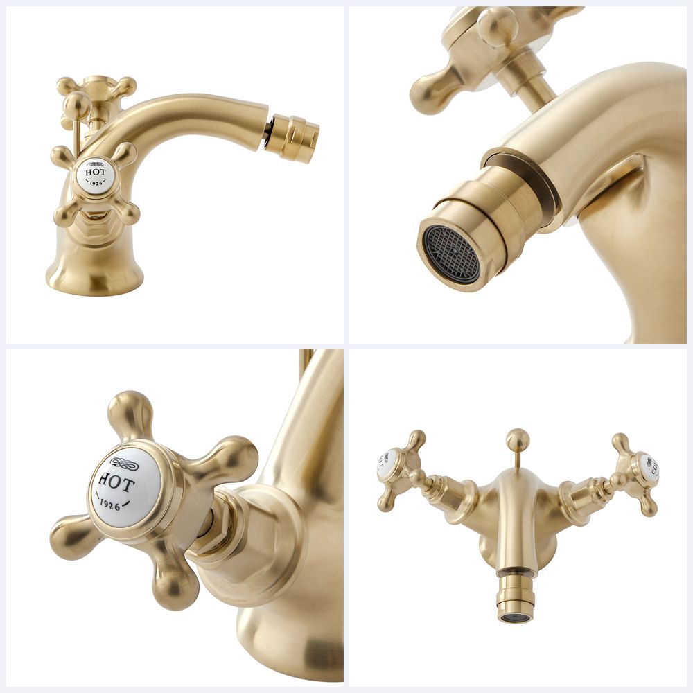 Mélangeur bidet rétro – Commandes en croisillon – Or satiné – Elizabeth