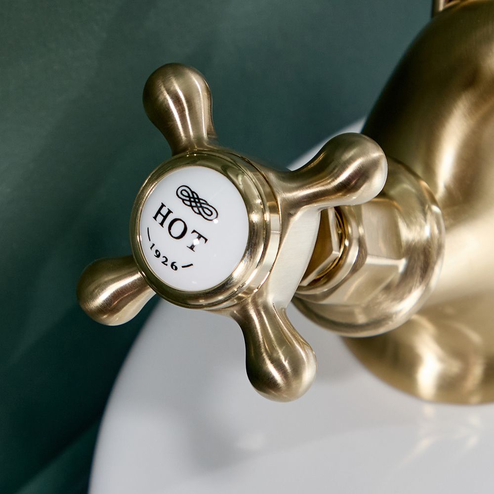 Le mélangeur bidet rétro Elizabeth dispose d’une finition or satiné résistante et de magnifiques commandes en croisillon aux détails en céramique, ajoutant ainsi une touche luxueuse et élégante à votre salle de bain.