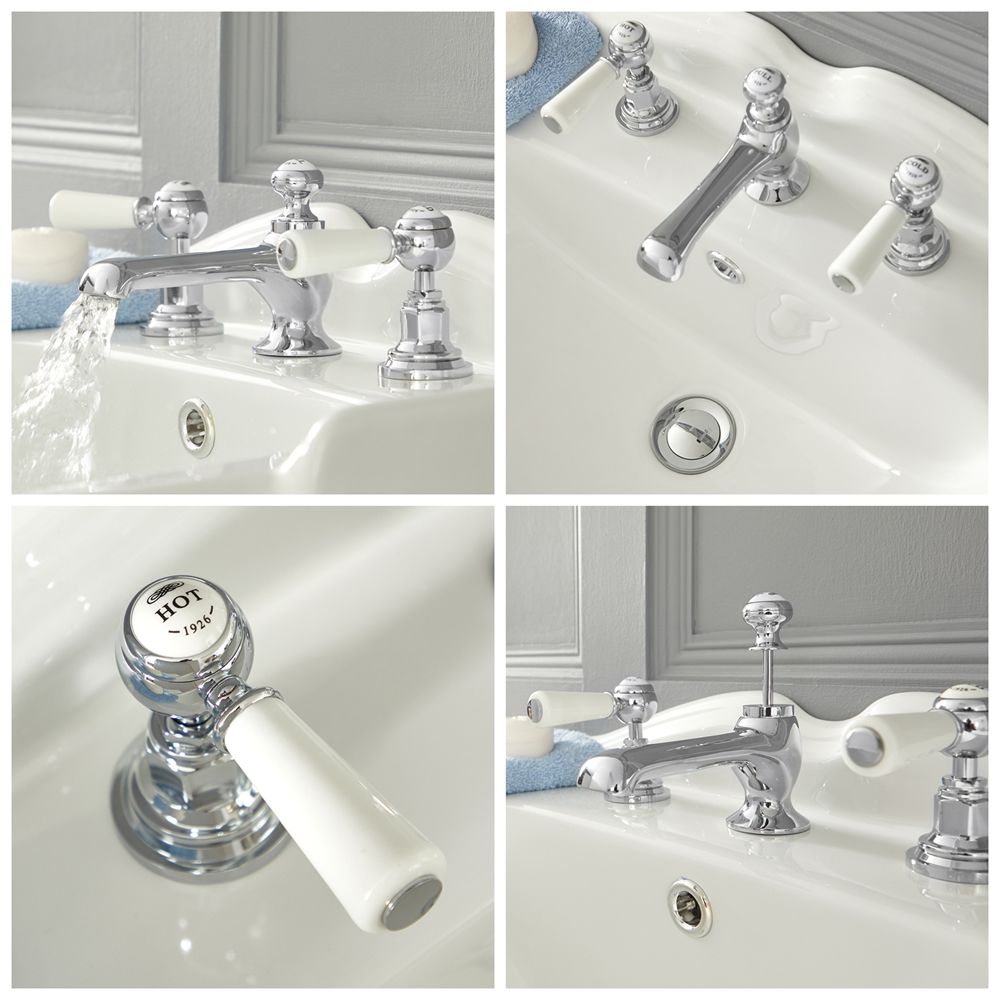 Fabriqué en laiton massif pour une durabilité garantie, ce robinet de lavabo est doté d'une finition chromée et blanche pour un look classique et de poignées à leviers pour un contrôle facile.
