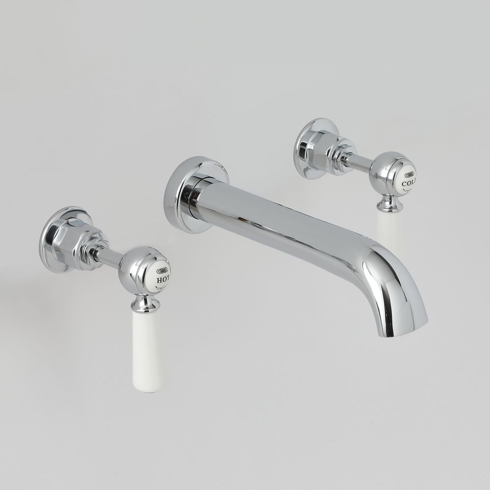 Mélangeur lavabo mural rétro à 3 trous – Commandes leviers – Chromé et blanc - Elizabeth