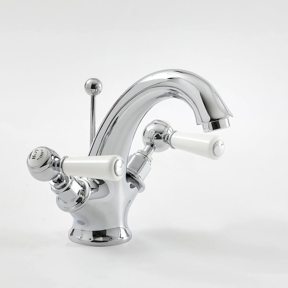 Mélangeur lavabo rétro à levier – Chromé et Blanc - Elizabeth