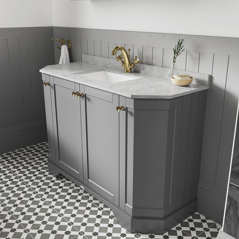 Meuble de salle de bain rétro – Avec plan de travail en marbre gris – 102 cm – Choix de finitions et de vasques – Old London