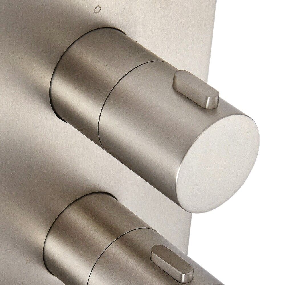 Conçu en laiton, le mitigeur présente une finition nickel brossé et permet l'usage de deux fonctions, comme une pomme de douche et des jets hydromassants, que vous pourrez utiliser simultanément si souhaité, grâce aux robinets dédiés. Il permet de renouveler un espace douche contemporain élégamment.