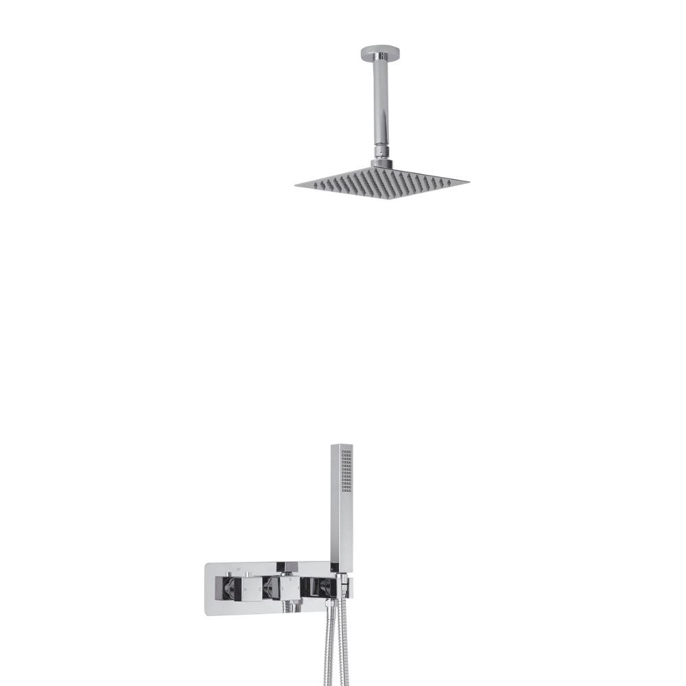 Mitigeur de douche thermostatique avec inverseur avec douchette et pommeau plafonnier – 2 fonctions – Kubix