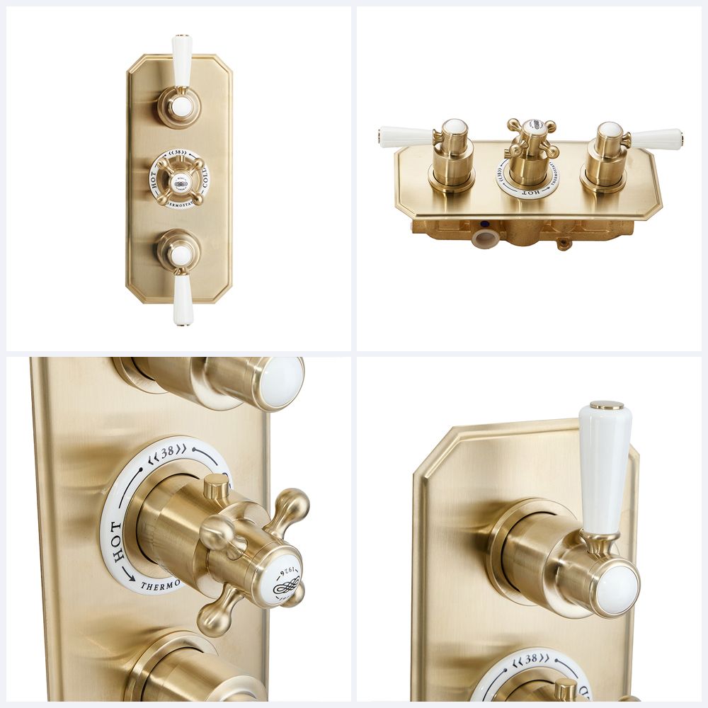 Mitigeur de douche thermostatique rétro encastré – 3 fonctions – Avec inverseur – Or satiné – Elizabeth