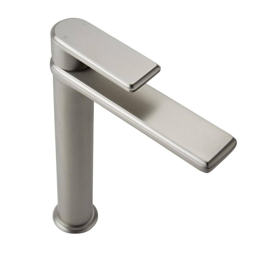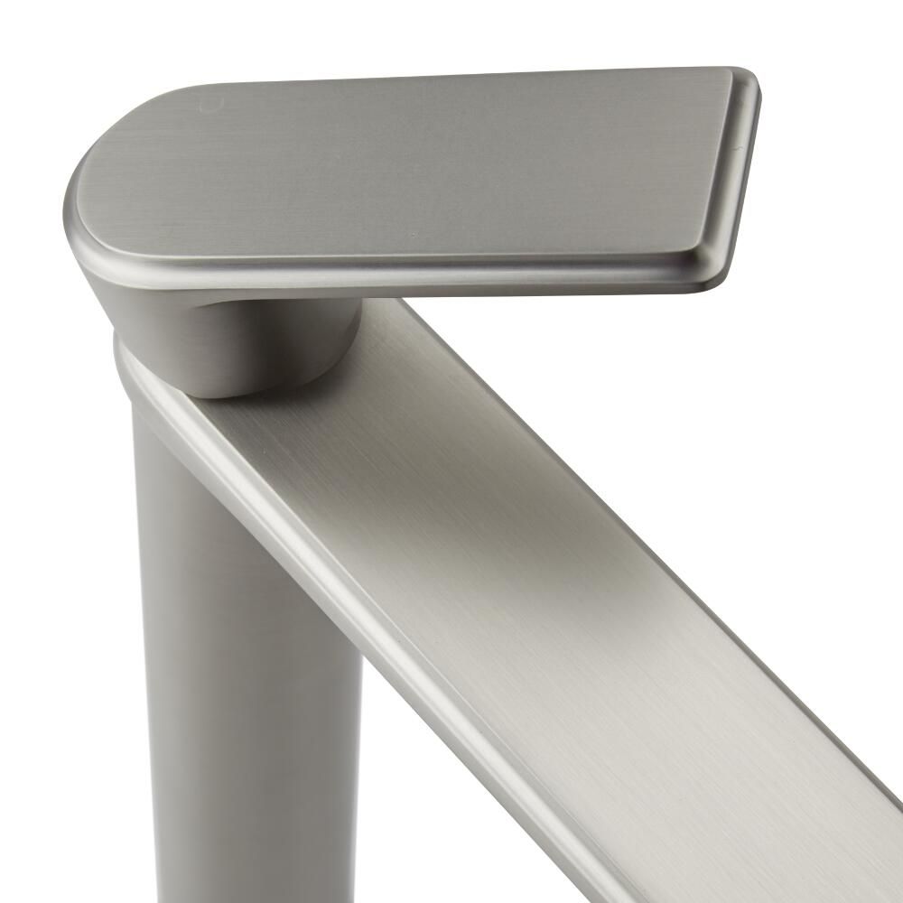 Doté de lignes géométriques et épurées, et d’une finition nickel brossé moderne, ce robinet est fabriqué en laiton massif sans plomb et durable. Conçu pour une utilisation avec une vasque à poser sans trous pré-percés, le mitigeur haut est muni d’une commande à levier unique pour un contrôle facile du débit d’eau et de sa température.