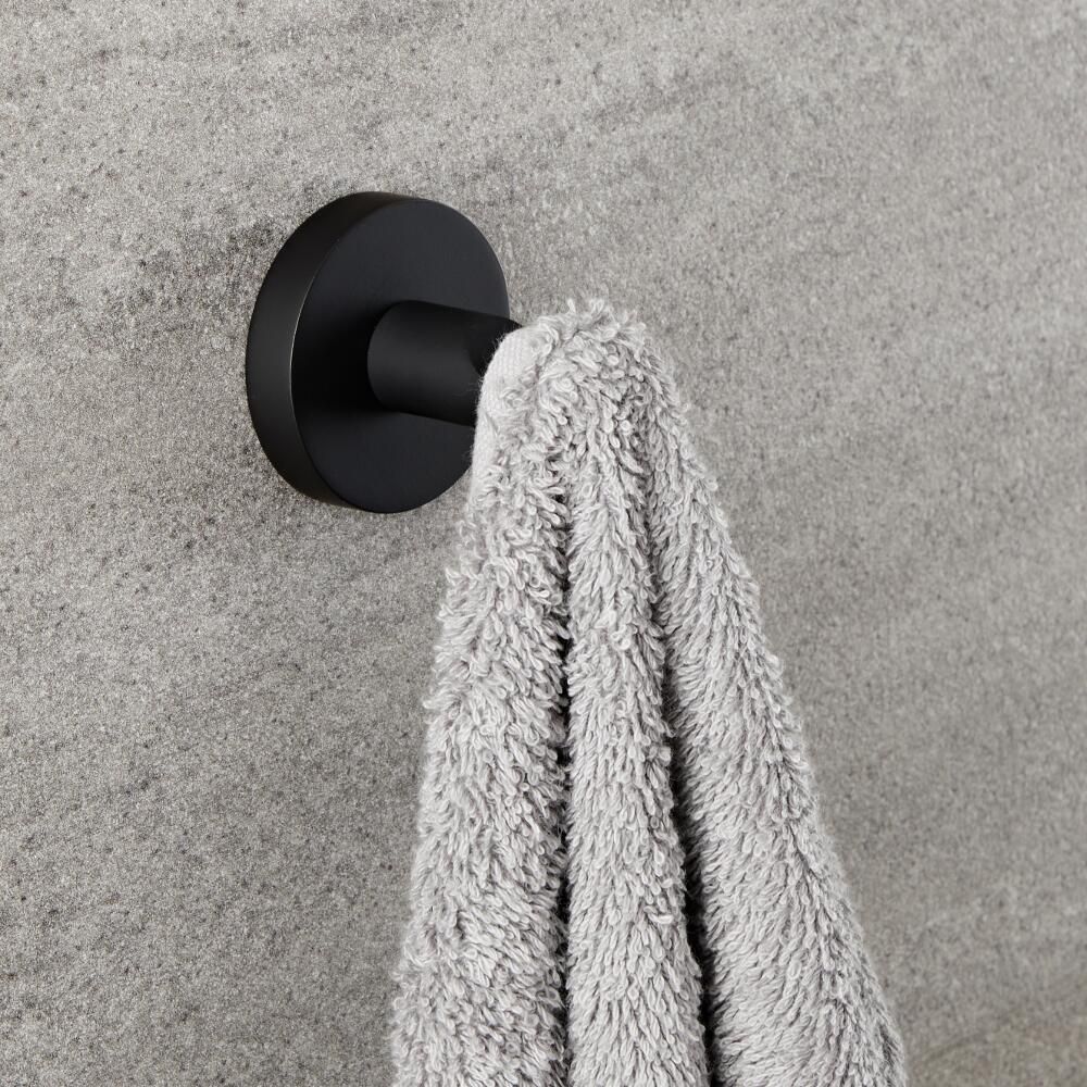 Ces petites touches font toute la différence pour créer un look moderne et contemporain dans votre salle de bain pour se démarquer, comme l'illustre le porte-peignoir noir mat Nox.