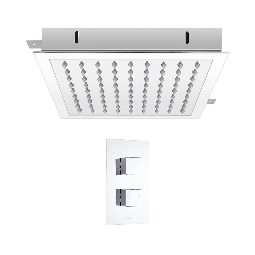 Pommeau de douche carré encastré moderne 28 cm avec kit mitigeur thermostatique - Chromé - Arvo
