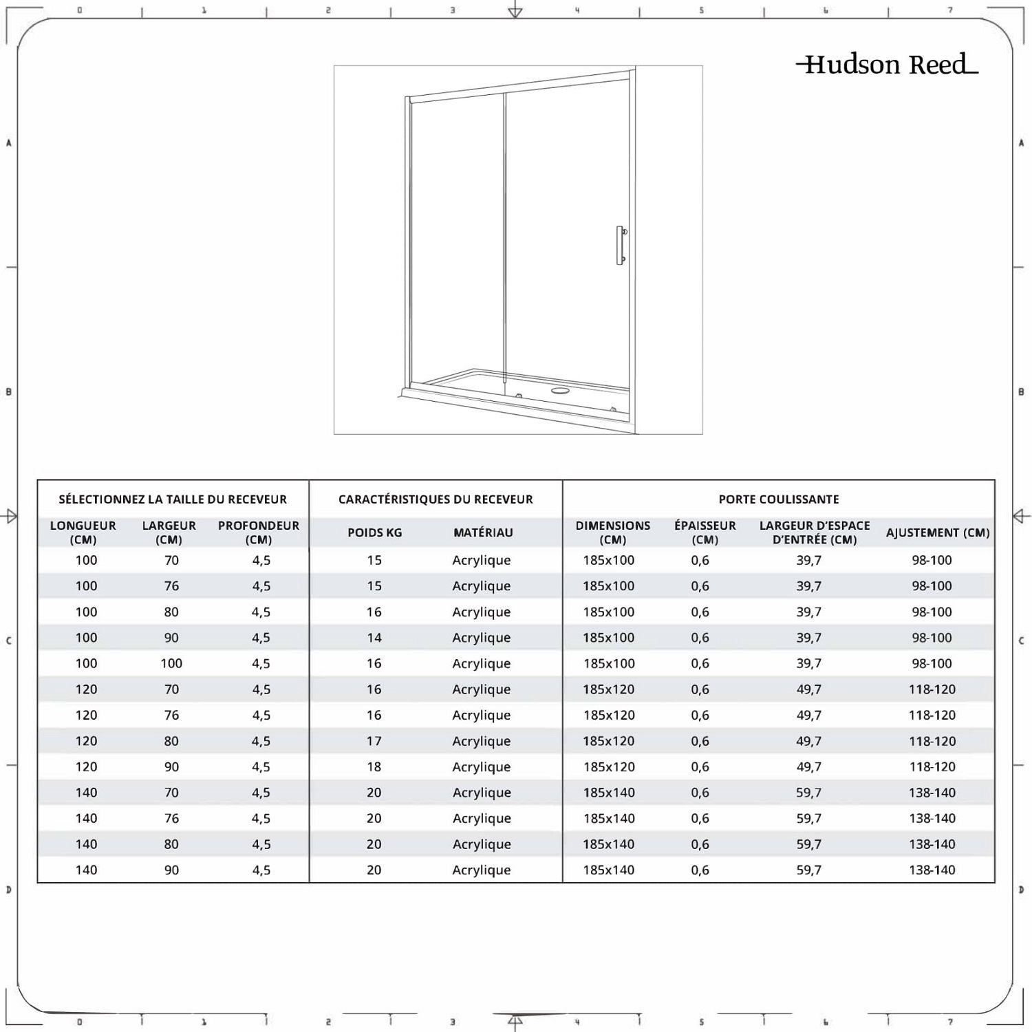 | Matériau du receveur de douche | ABS filmé d'acrylique |