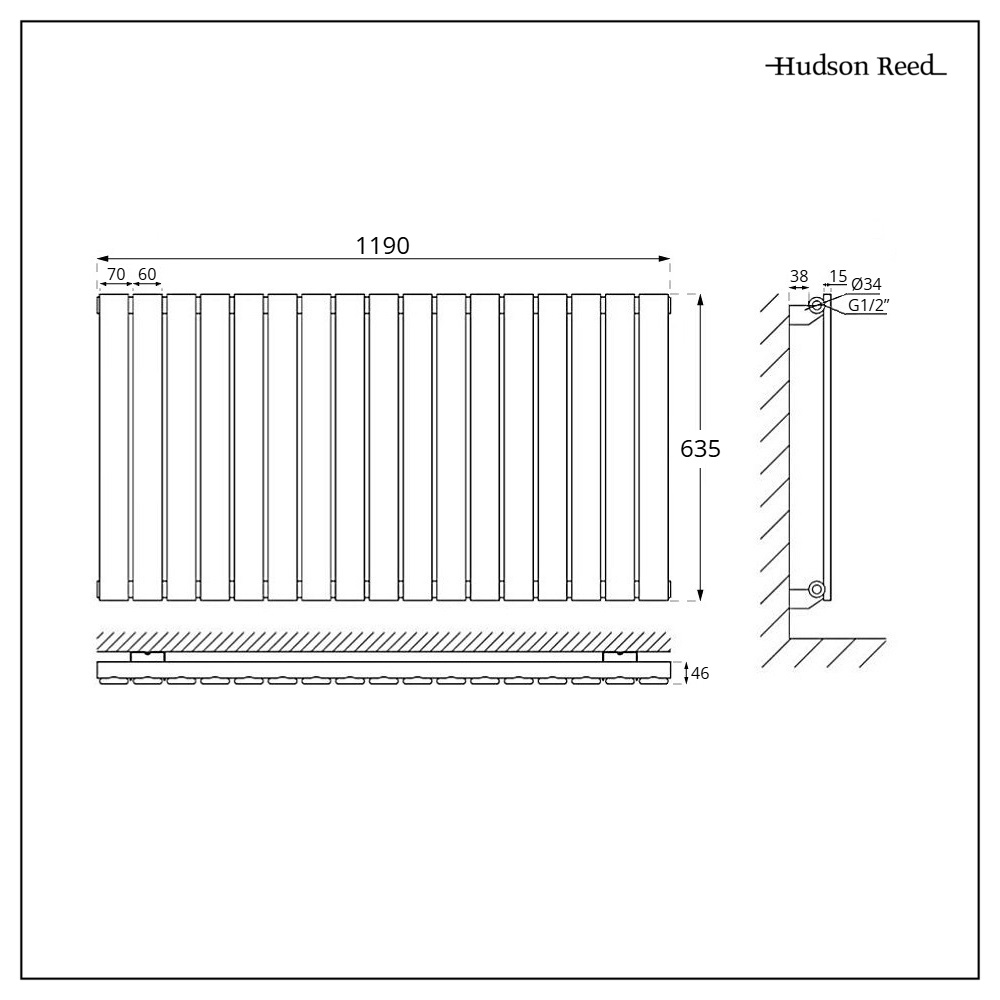 Radiateur design électrique horizontal – Noir – 63,5 cm x 119 cm – Câblé – Delta – ECOSO par Hudson Reed