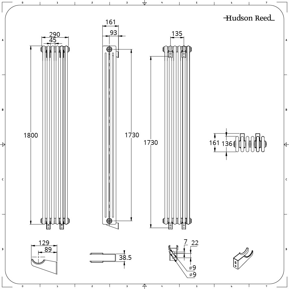 Radiateur vertical style fonte – Blanc – 180 cm x 29 cm – Quatre rangs – Windsor