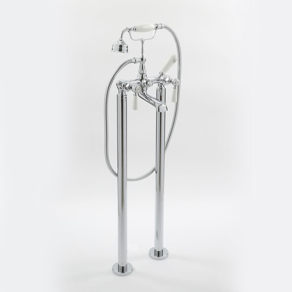 Robinet bain douche îlot rétro – Commandes leviers – Chromé et blanc - Elizabeth