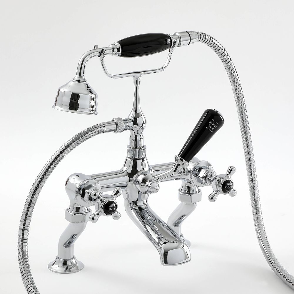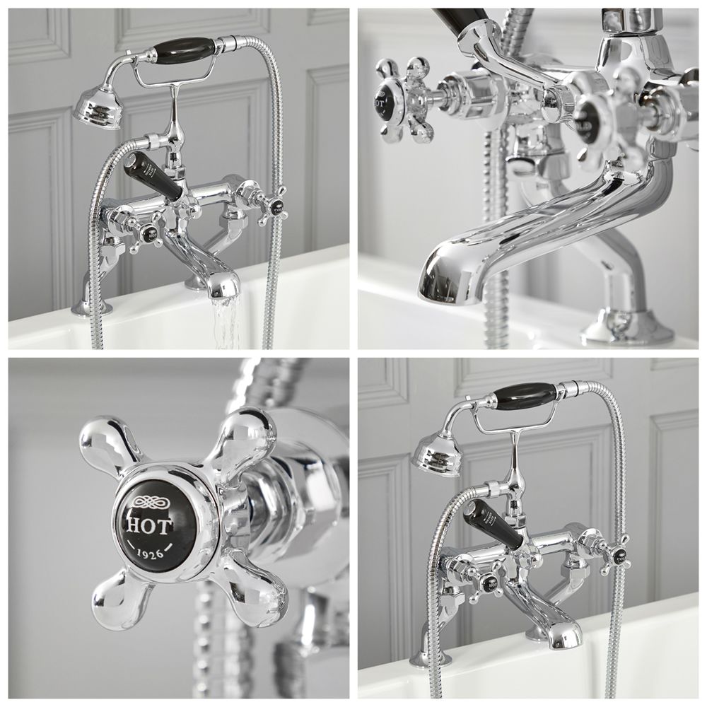 Robinet bain douche rétro – Commandes croisillons – Chromé et noir - Elizabeth