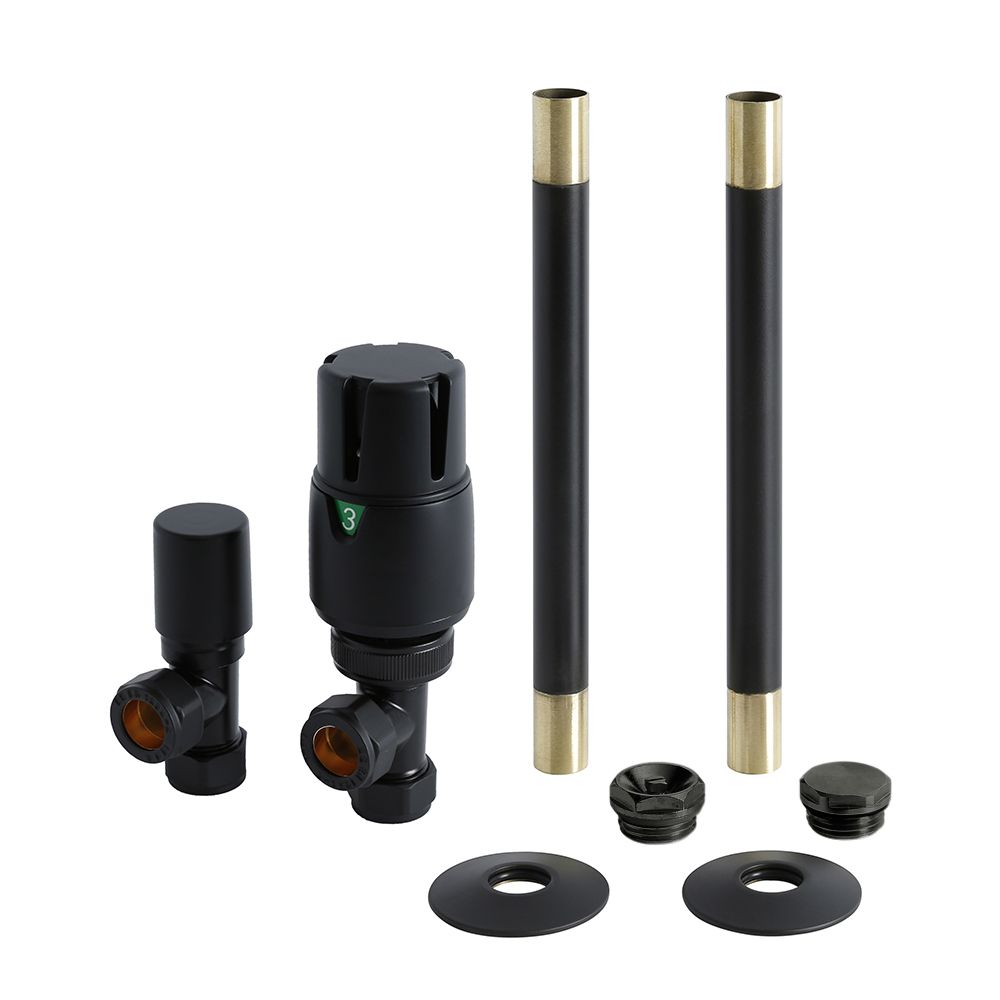 Robinet de radiateur coudé thermostatique moderne et kit de tuyauterie - Noir