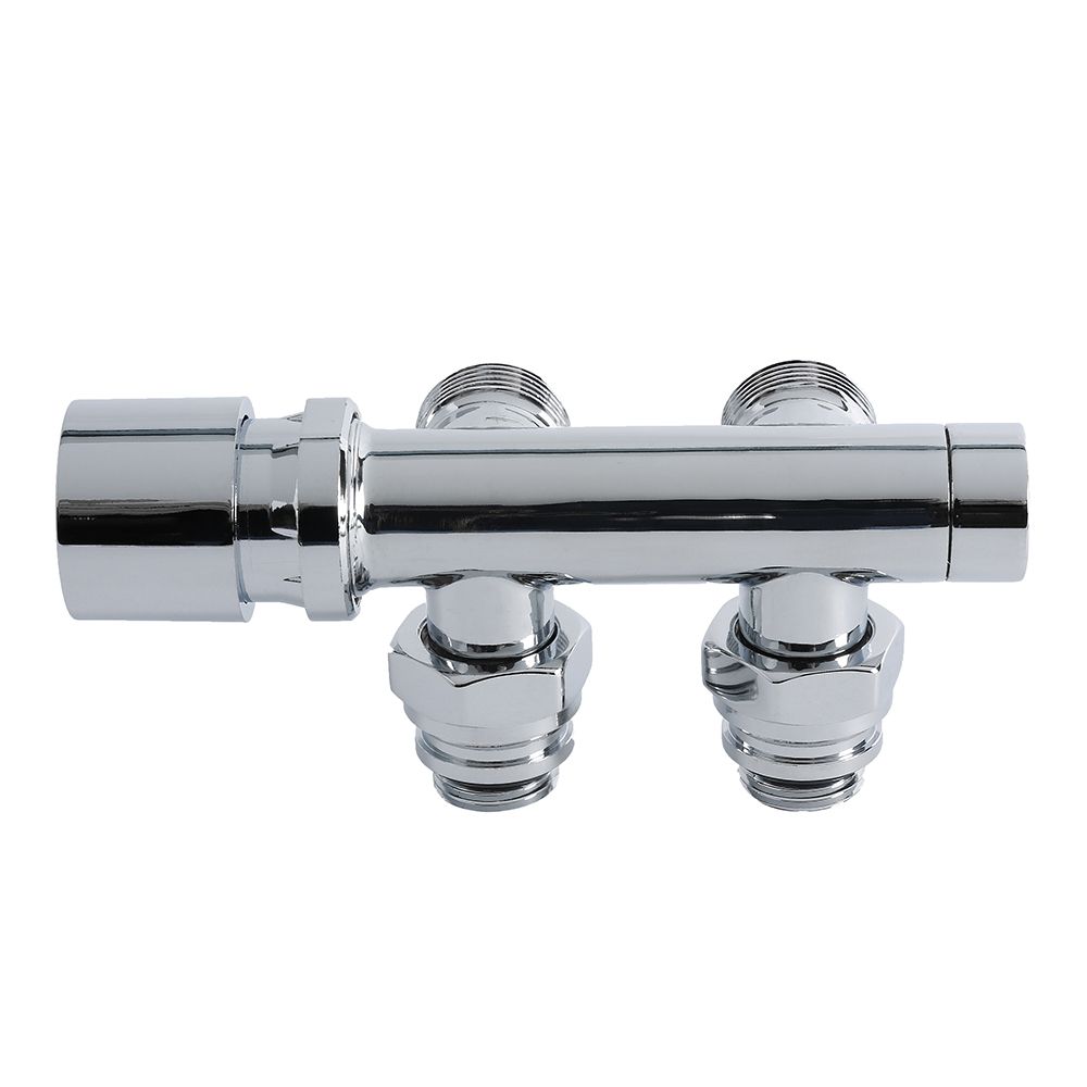 Ce robinet de radiateur d'angle complétera votre radiateur design ou votre sèche-serviettes aux raccords centrés en leur bas. Il est fourni avec une paire d’adaptateurs pour une installation sur tuyauterie en cuivre de 14mm.