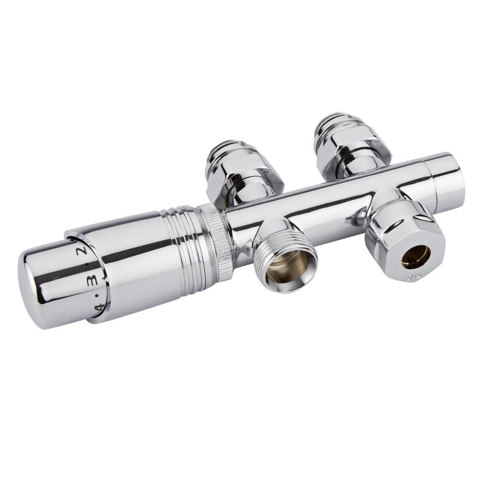 Robinet de radiateur thermostatique droit en « H » - Chromé - Adaptateurs cuivre 12mm