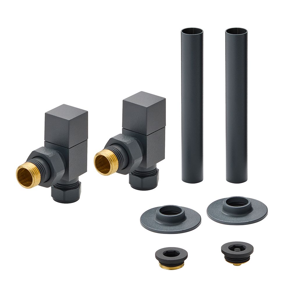 Robinets de radiateur d'angle carré et cache tuyauterie - Choix de finitions