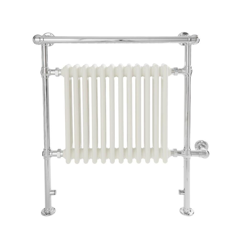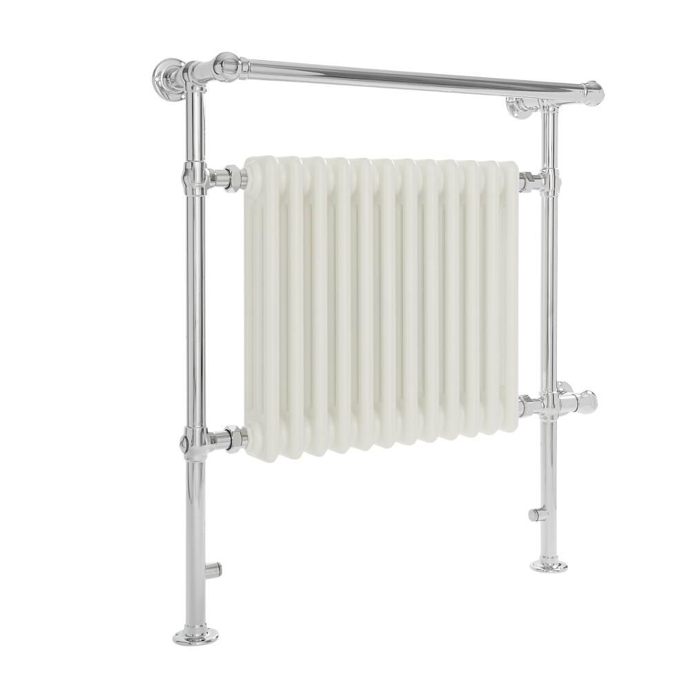 Sèche-serviettes électrique rétro - Blanc & Chrome - 93cm x 79cm x 23cm - Elizabeth