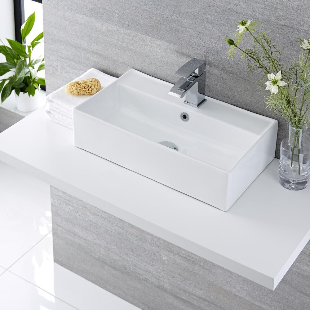 Transformez votre salle de bain avec la vasque à poser Halwell, fournie avec le mitigeur lavabo monotrou Wick.