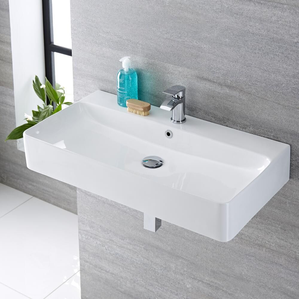 Vasque suspendue moderne – Blanc – 80 cm x 41,5 cm (1 trou) - Exton